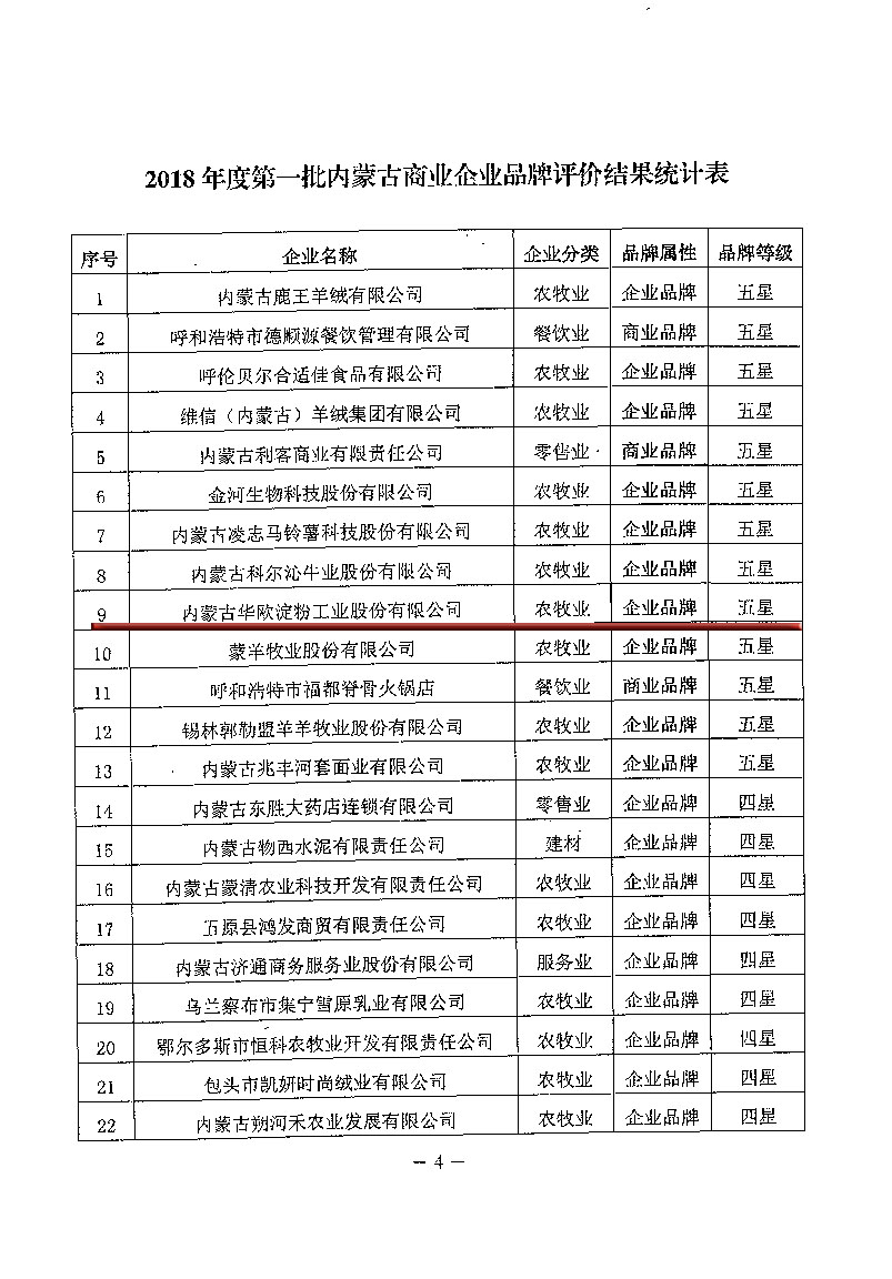 按照《商业企业品牌评价与企业文化建设指南》(GB/T27925-2011)国家标准和《品牌评价认定规范》(T/NMB 001-2018)团体标准,华欧公司经过品牌评价,认定达到国家星级企业,品牌等级为五星。