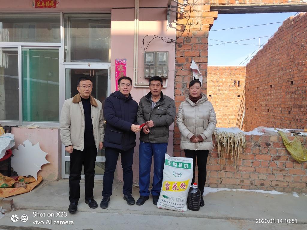 在新春佳节来临之际,为进一步落实精准扶贫帮扶工作,2020年1月14日上午,华欧公司总经理、公司党支部书记高瑞同志、工会主席云春芳及工会成员、行政部主任司景云一行对公司6家贫困户进行扶贫慰问,为他们送去了米、面、油等生活用品及慰问金,并为大家送上新年祝福,祝他们新春快乐吉祥如意!